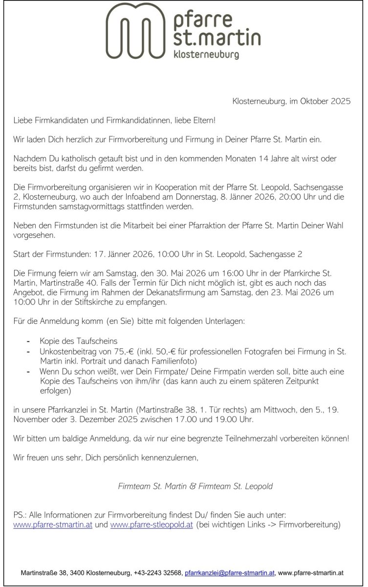 Als Pfarre, als Kirche haben wir für ganz viele neu beginnende Abschnitte des Lebens etwas zu bieten. Was wir für diese Schnittstellen bieten, nennen wir Sakramente. Die Schnittstelle "Zeit des Erwachsenwerdens" feiert die Kirche mit der Firmung.
