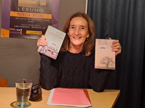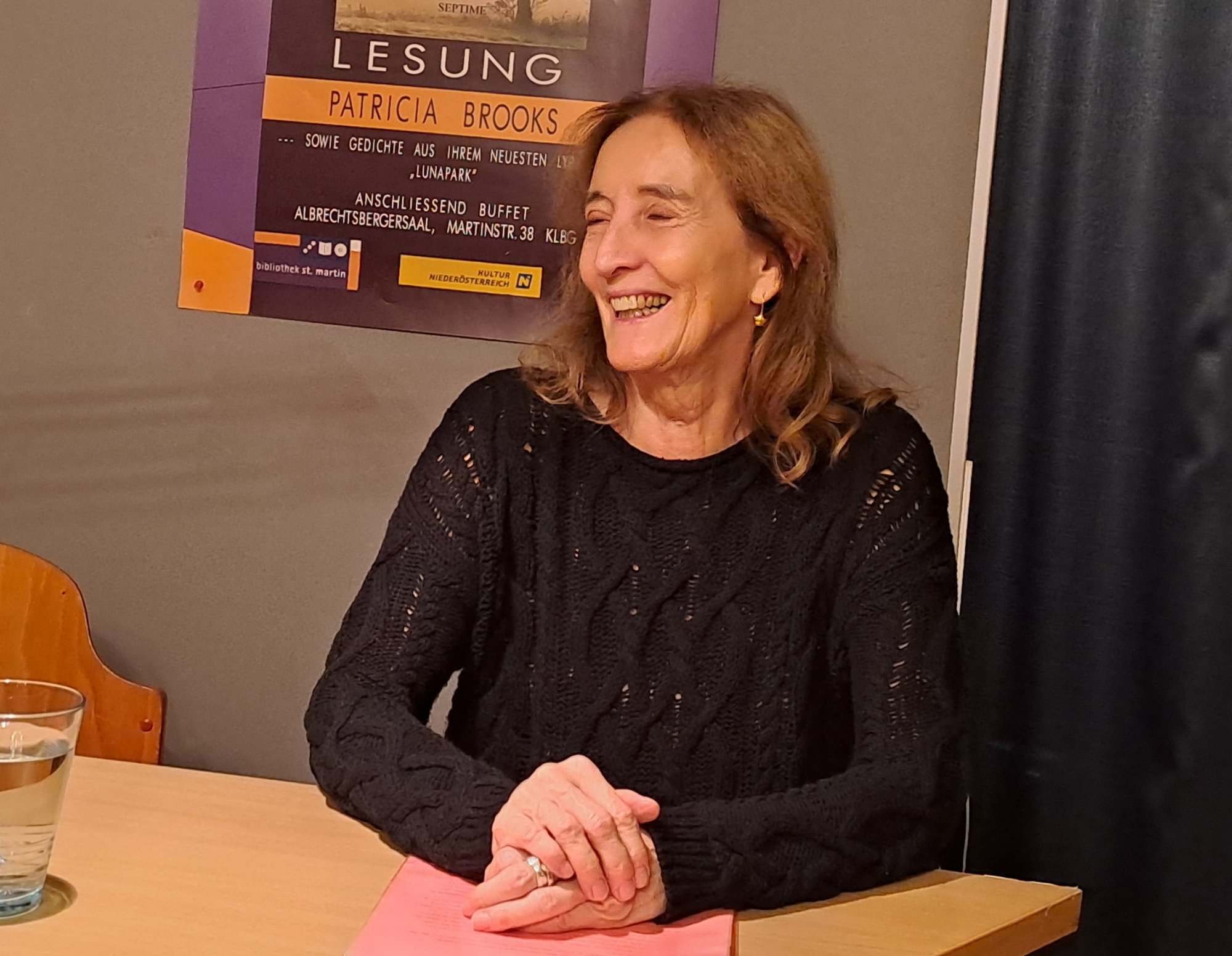 Patricia Brooks, die jahrelang in der Literaturgesellschaft Klosterneuburg mitwirkte, kam am Freitag, 10. Oktober auf Einladung der bibliothek st. martin wieder einmal nach Klosterneuburg. Sie las aus ihrem Roman „Flussgeister“, einer Geschichte, die ganz in der Nähe der Pfarre St. Martin am Ufer der Donau spielt, einer Gegend, die die Autorin seit ihrer Jugend schätzt und immer wieder besucht. Der Roman handelt von zwei Außenseitern, deren zufällige Freundschaft einen Wendepunkt in ihre Leben bringt. Schließlich gab die Autorin auch Kostproben ihrer Gedichte aus ihrem Lyrikband „Luna Park“.